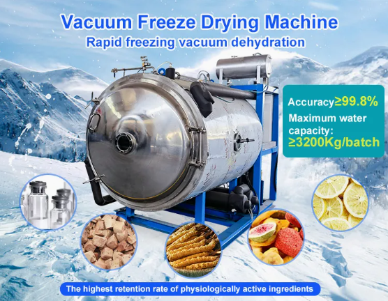 industrial food cryogenic Vacuum Freeze drying Lyophilizer machine is a new type of chamber that combines the freeze system, vacuum system,heating system and de-humidification system into a vacuum freeze dryer.