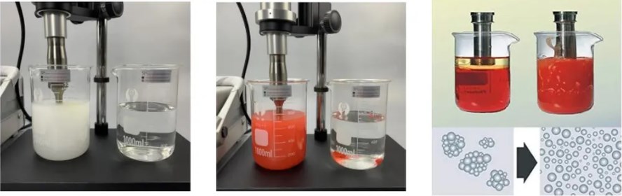 Application- Disruption of cells, bacteria, viruses, spores, fungi or tissues (cell disruption) - Extraction of ingredients (lysis) - Homogenization of different substances - Production of finest emulsions with minimum droplet size - Dissolution of poorly and poorly soluble substances in liquids - Production of dispersions (emulsions and suspensions) - Catalysis and acceleration of chemical reactions