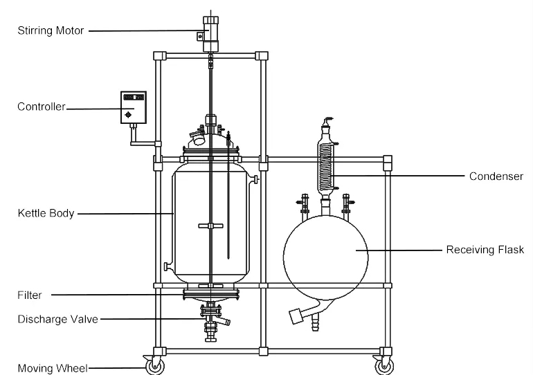 Filtration Glass Reactors combine the functions of a reactor and a filter in one unit. One or more steps (e.g. filtration after completion of reaction) are completed in the same vessel, thus reducing the deviation of material measurement and the number of transfers. Mainly used for material reaction and solid-liquid separation, optional collection tank can quickly separate filtrate through negative pressure, commonly used in drug synthesis, fine chemicals, new material synthesis, biopharmaceuticals, peptide synthesis and other industries.