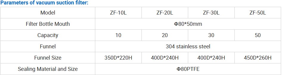 This large capacity vacuum filter is owing to the needs of the users' bulk filtering demand. It is widely used in biochemical pharmaceuticals, sanitation tests, environment tests, water quality analyses, food, beverage, and science research for liquid preliminary filters.