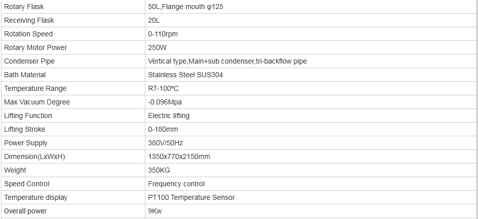 The vacuum rotary evaporator is heated by water/oil bath under negative pressure conditions, while forming a thin film in the inner of the evaporating flask by continuous rotation, evaporating highly, then condensing and recycling the solvent simultaneously. The apparatus is particularly suitable for the heat-sensitivity material's condensation, crystallization, separation, recovery, and so on.