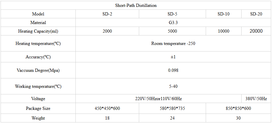 2. Short path distillation is made from high borosilicate glass 3.3 and PTFE, which have excellent corrosion resistance.