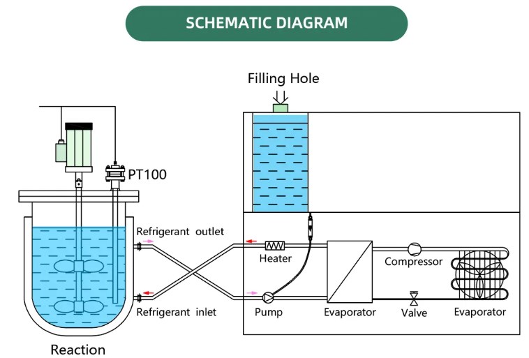 Widely used in chemical, pharmaceutical or biotechnology reactor, control mixing tank temperature, metal(glass) double layer reactor, thermal test platform, constant temperature control of material and equipment.