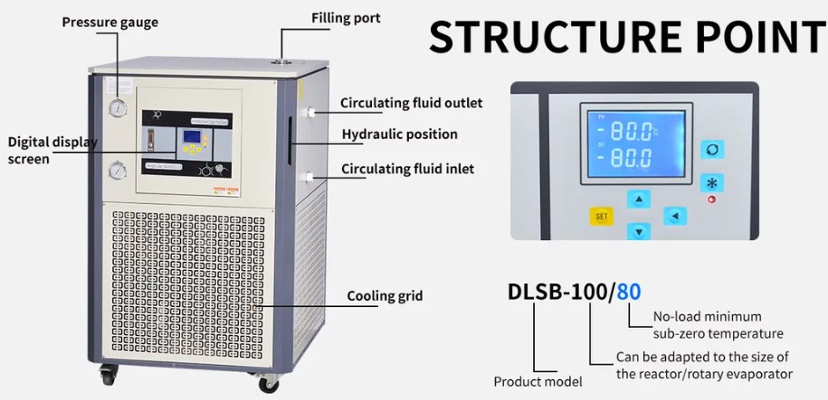 Lab Thermostat Temperature Control Heating Cooling Circulator -The High and low temperature circulation integrated pump, which are temperature control equipment integrating refrigeration and heating functions. The temperature can be switched arbitrarily and the temperature rises and falls quickly. The high and low temperature circulation device series products are mainly used for testing and production in the pharmaceutical, chemical, biological products and other industries. They are mainly used to connect the interlayers of various reactors. The high and low temperature silicone oil is pumped into the interlayer of the reactor through the circulation pump to perform high or low temperature reactions on the materials in the reactor.