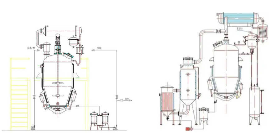 1. vacuum concentrator makes use of the methods of vacuum evaporation or mechanical separation to concentrate the materials. vacuum concentrator is composed of heater, evaporation chamber, foam remover, condenser, cooler and liquid receiver, etc. All the parts contacting with materials are made of SUS304/316L. 2. vacuum concentrator is suitable for the liquid evaporation&concentration in the industries of pharmacy, food, chemical, light industry, etc. This equipment features short concentration time, fast evaporation time and can protect the thermal sensitivity materials well. 3. At present, in order to improve the concentrated products' quality, concentrator widely adopts vacuum concentration process. Usually, under 18-8Kpa low pressure state, it heats up the liquid materials by indirect steam heating to make it evaporate under low-temperature. So, the temperature difference between heating steam and liquid materials is larger. Under the same heat transfer condition, its evaporation rate is higher than atmospheric evaporation, which can reduce the liquid nutrition loss.