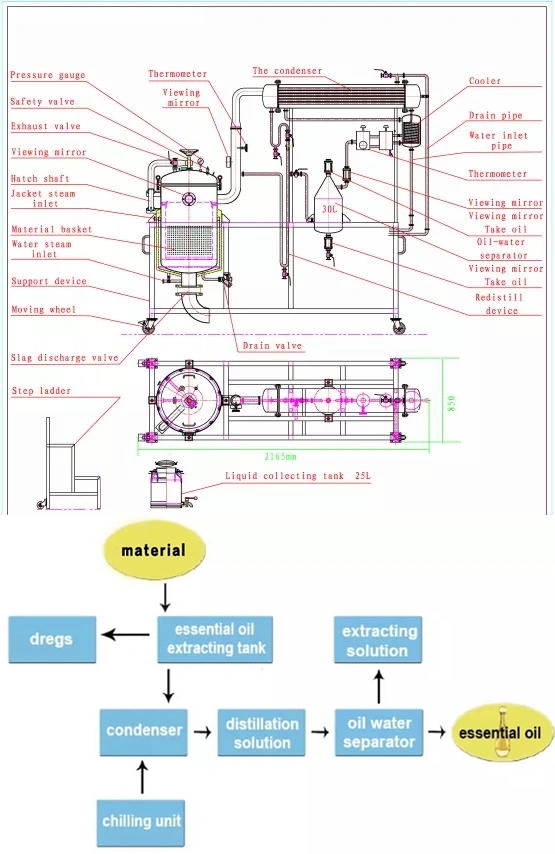2. This equipment is a super small steam distillation extraction device developed by our company based on the classic process of essential oil extraction, combined with advanced automation control system. Reasonable structural design and superior performance. The operation is simple and flexible, and one person can easily complete the entire production.