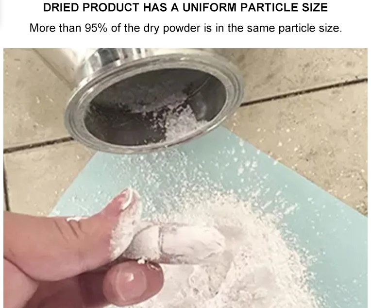 1) Spray dry at low temperature (50ºC) using for thermosensitive material.