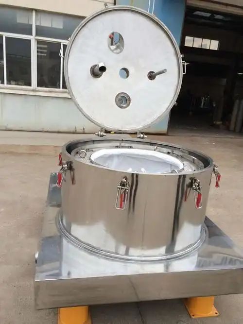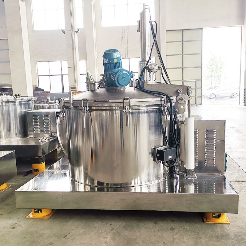 The Flat Bag Centrifuge or Palm Oil plate Filter centrifuge Extractor is a closed structure filtration equipment, which is composed of driving device, body, casing, drum, hanging bag, brake device, clutch and other components. The materials are added into the drum from the upper part. Under the action of centrifugal force field, the liquid phase passes through the filter medium and is discharged out of the machine. The solid phase is trapped in the drum. After the machine is stopped, the liquid blocking plate and the filter bag are lifted out together to the designated place place to unload.