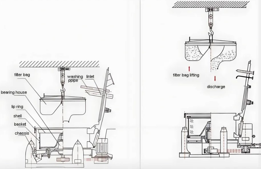 Bioland instrument Lifting Bag filter centrifuge Separator operated intermittently by manual loading and unloading. This model has the advantages of simple structure, convenient operation, and strong adaptability. The filtering time can be flexibly controlled according to the material characteristics and separation requirements. The filter residue can be fully washed, and the solid particles are not easy to be damaged. It can be widely used in the chemical industry, light industry, pharmacy, food, textile, machinery, and other industries.