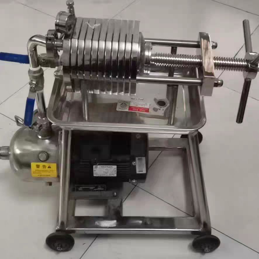Stainless steel plate and frame filter /Industrial Press Filter is made of high-quality stainless steel , which is corrosion-resistant and durable . Because the filter plate of this machine adopts a threaded structure , different filter materials can be replaced according to the different production processes of the filtrate (primary filtration , semi-fine filtration , fine filtration ) can achieve the purpose of sterile filtration ) . Users can also reduce or increase the filter frame and filter plate according to the production flow to make it suitable for production needs .
