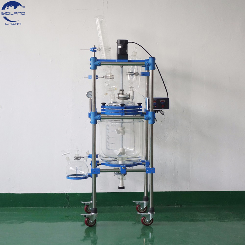 Jacketed Glass Chemical Crystallization Bioreactor - solid phase synthesis reaction kettle is a commonly used biochemical instrument that combines the functions of a reaction kettle and a filter. It is mainly used in modern fine chemical, biopharmaceutical, scientific research and experimental industries, and performs crystallization, concentration, distillation, reflux, separation, and purification reactions under constant temperature and constant speed stirring conditions. It is an ideal instrument for teaching, small-scale testing, pilot testing, and production.